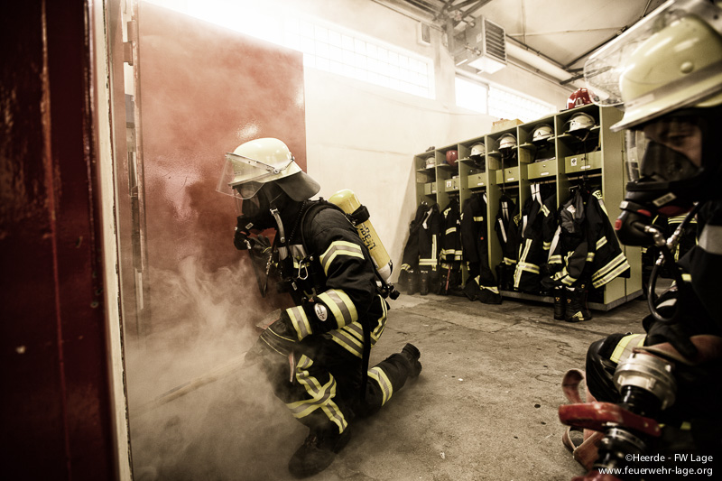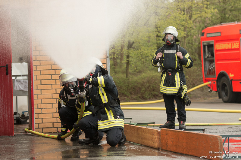 Zum Abschluss des Lehrgangs standen ein Durchgang in der Übungsstrecke des Feuerwehrausbildungszentrum Lemgo, sowie eine Wärmegewöhnungsübung im Brandhaus des Kreises Lippe auf dem Plan.