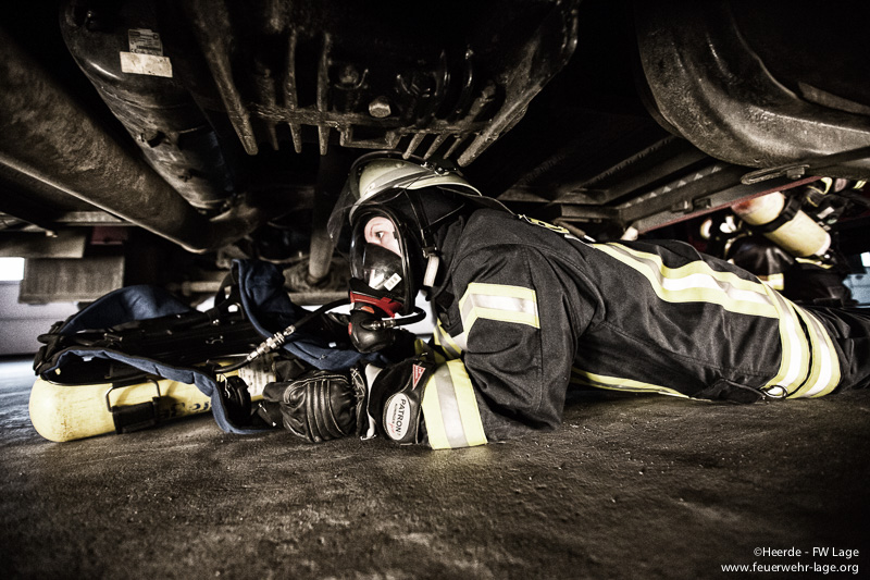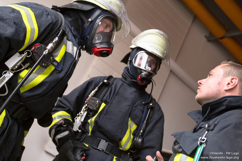 So wurde das Absuchen verqualmter Räume, die Kommunikation mit Funkgeräten, das schnelle Ausrüsten im Fahrzeug, das Retten von Personen, das Anlegen eines Chemiekalienschutzanzuges (CSA) und der Atemschutznotfall trainiert.